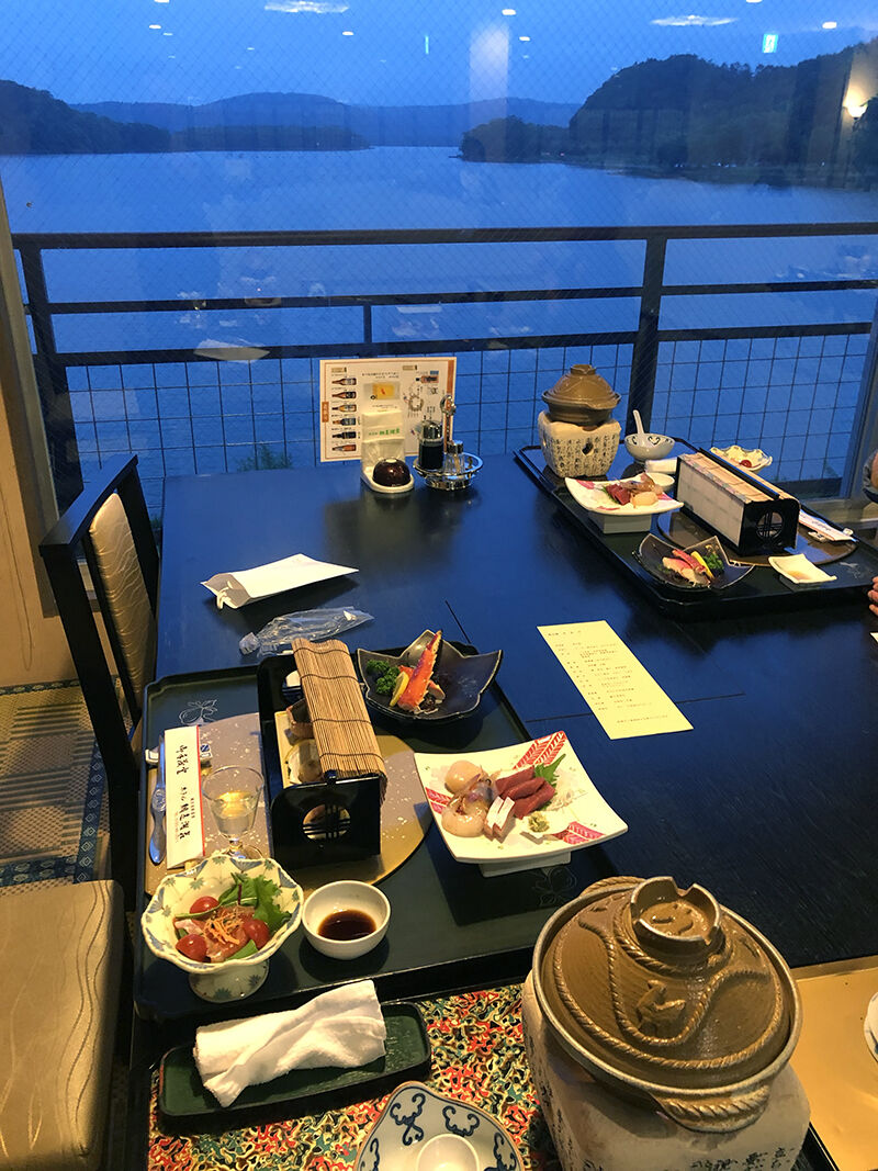 ↓ 走りまくって(^^; 湖畔の宿、レイクビューの部屋での夕食です