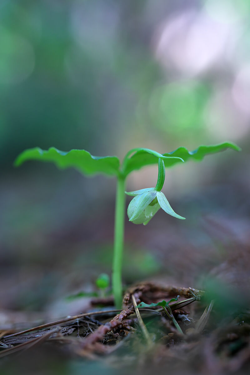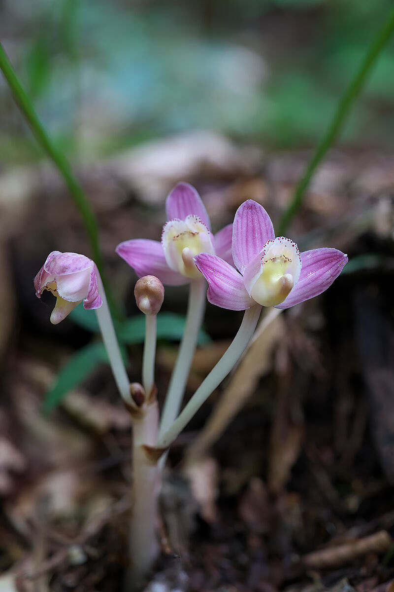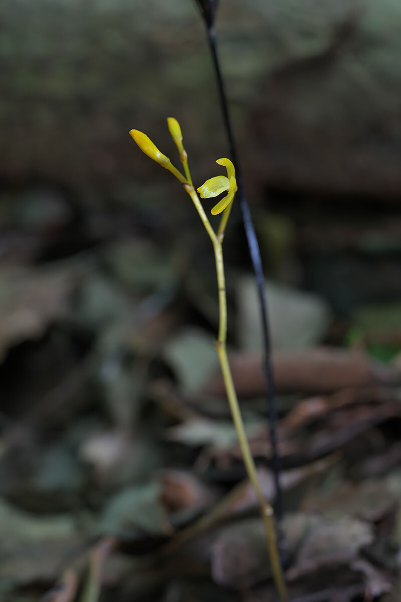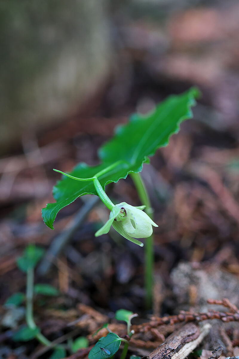 一昨年に見ているのですが、その時は訪問が遅くて1茎3花のうち1花の背萼片・側花弁が落ちてしまっていて残念でしたので再挑戦です。今年は花数が少なく1花開花、1つの蕾という状態でしたが、その分フレッシュで良かったです。少し離れたところにも1株ありましたがこちらも一番下の花が開花していて上の2つは蕾でした。
