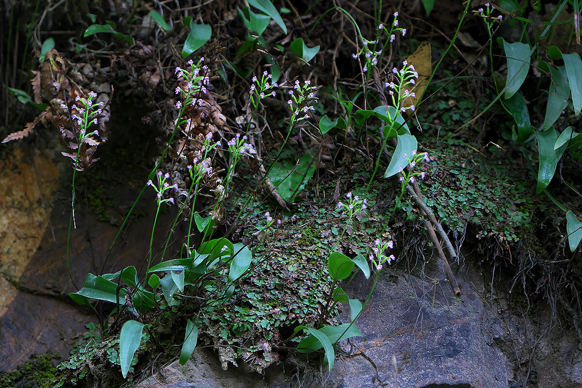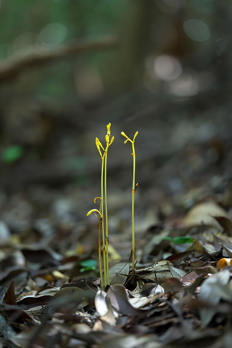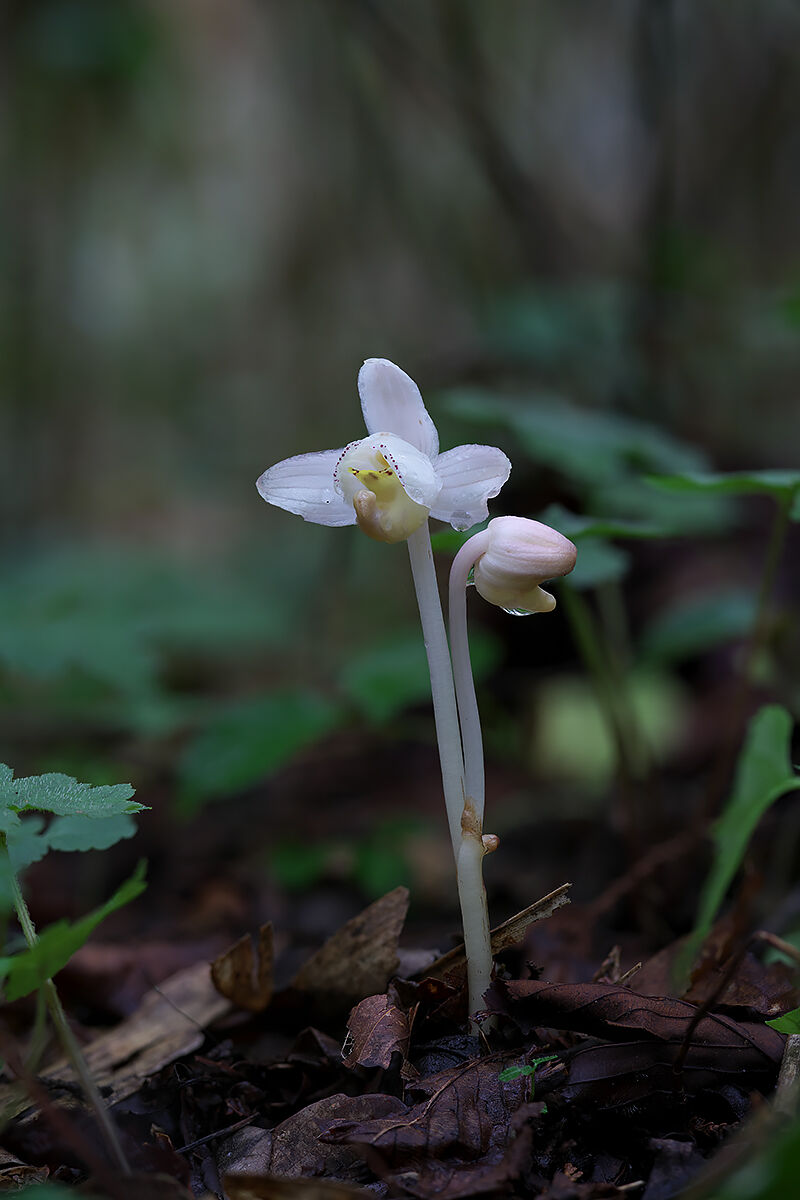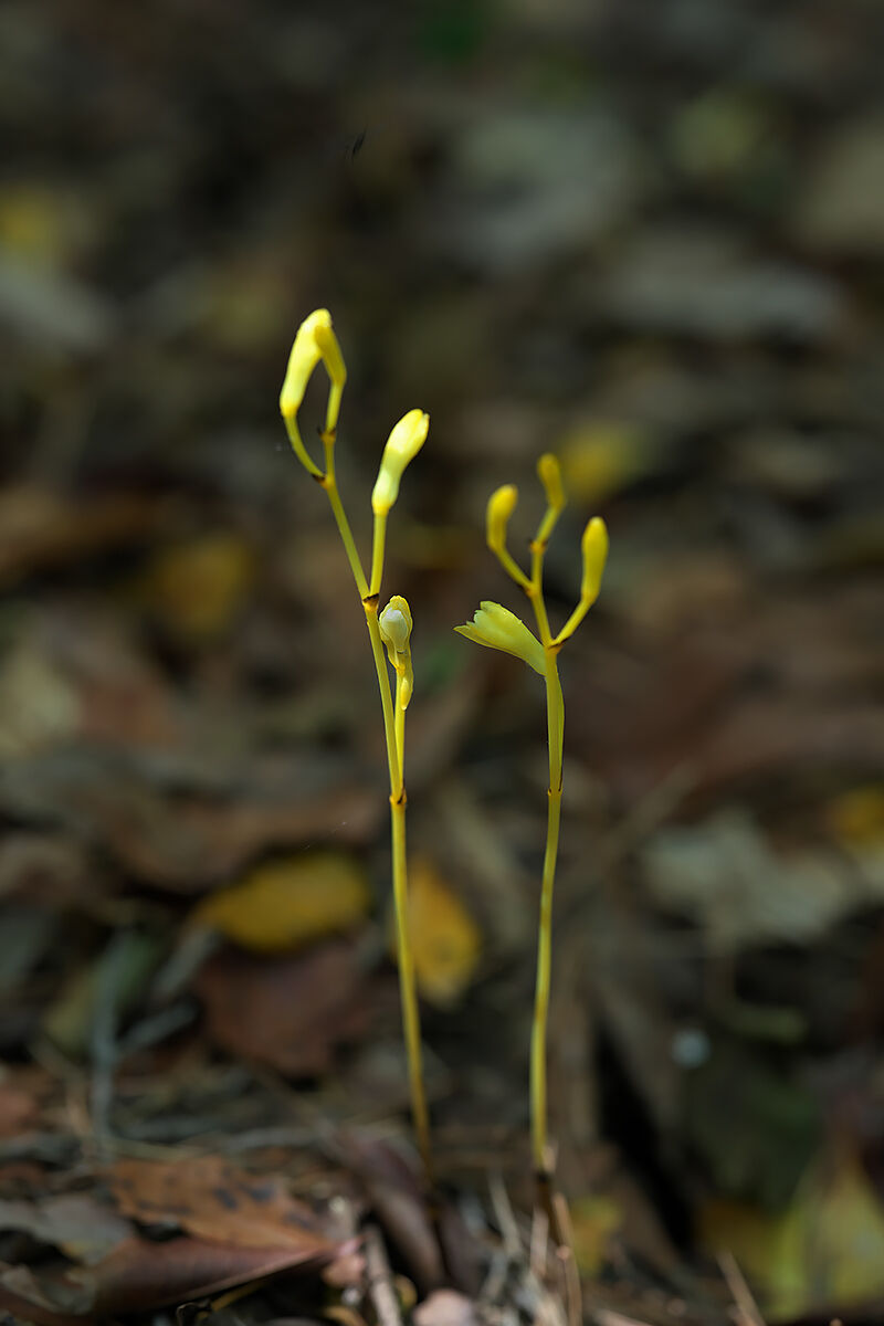 一昨年に見ているのですが、その時は訪問が遅くて1茎3花のうち1花の背萼片・側花弁が落ちてしまっていて残念でしたので再挑戦です。今年は花数が少なく1花開花、1つの蕾という状態でしたが、その分フレッシュで良かったです。少し離れたところにも1株ありましたがこちらも一番下の花が開花していて上の2つは蕾でした。