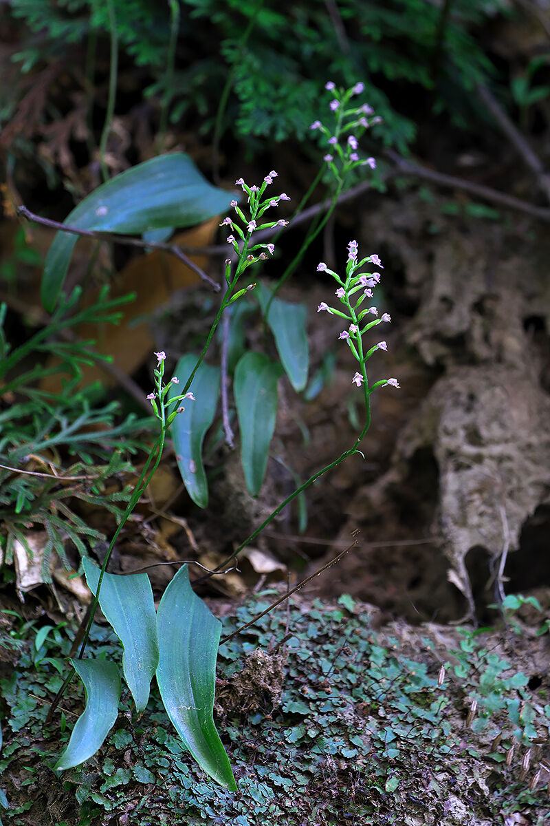 ↓ 目的の花は葉のみで残念、ヤビツギンランが咲いていました