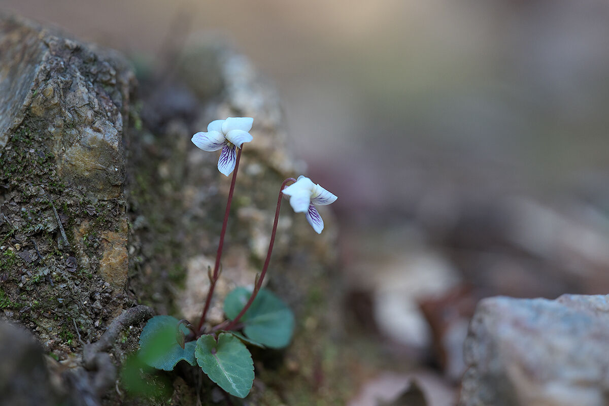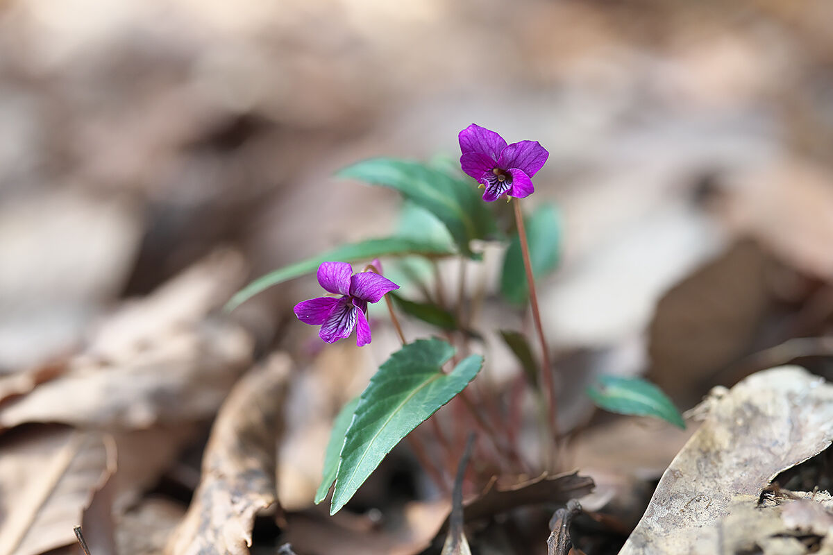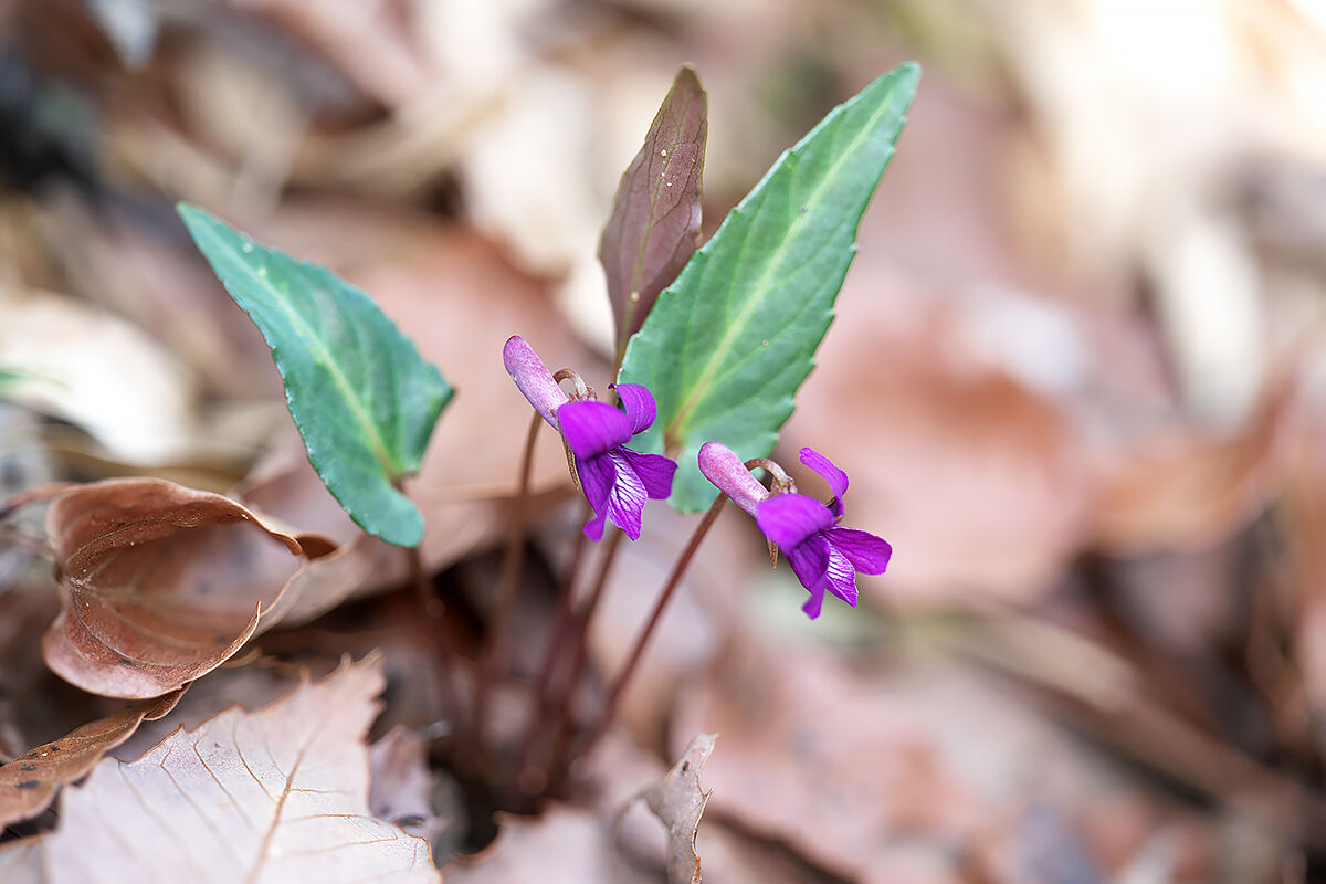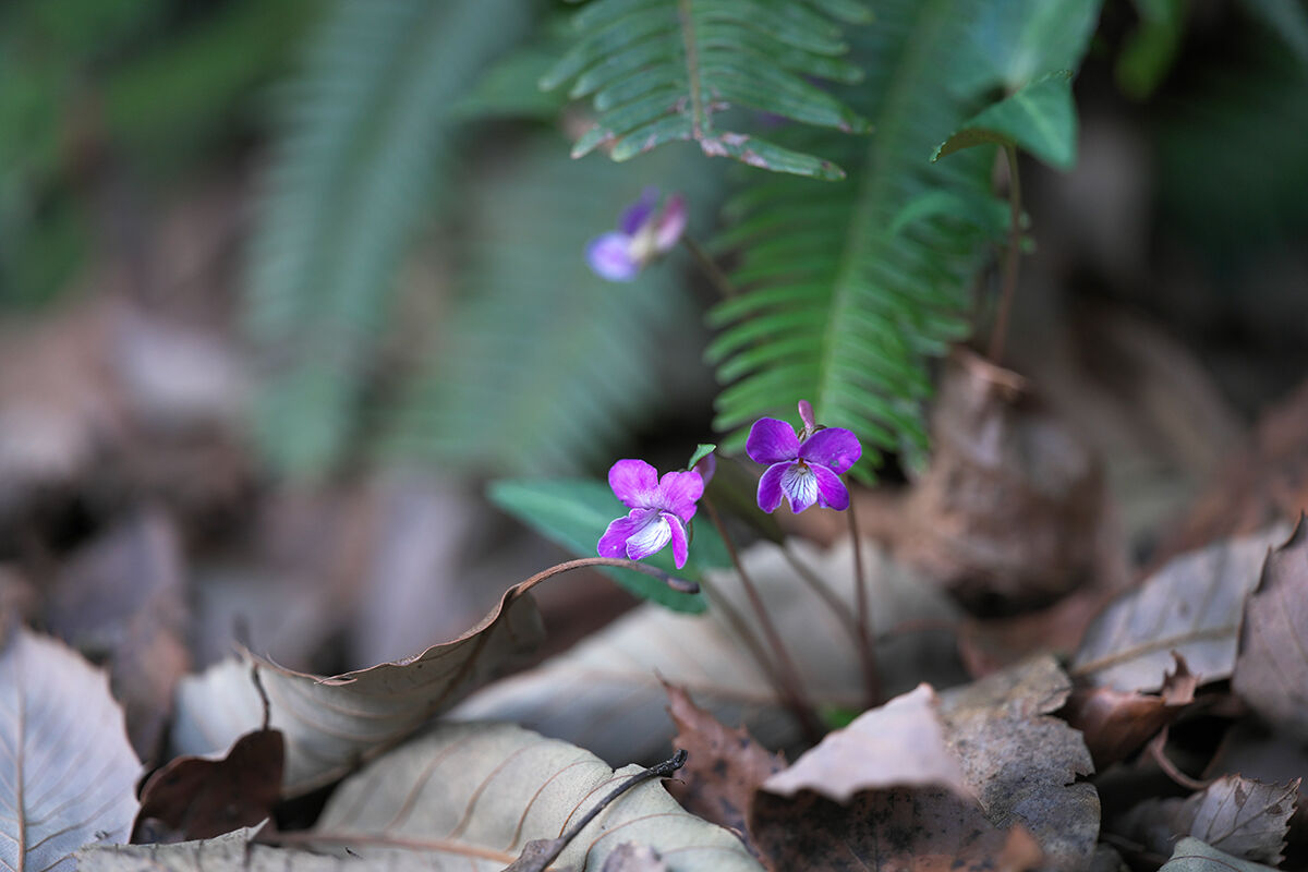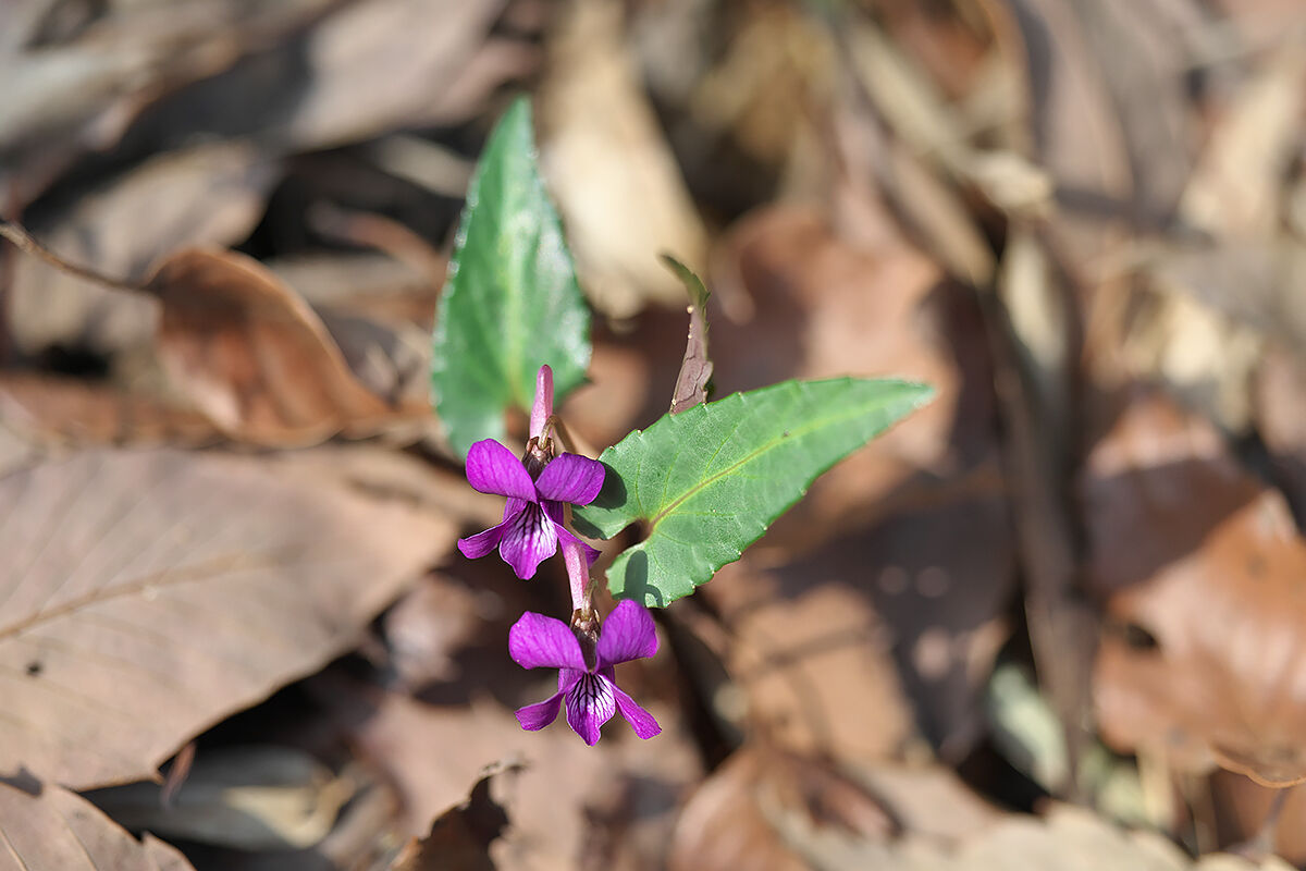 普通 花はマキノスミレに近い色が多いですが、こちらは花がフモトで葉がマキノです